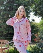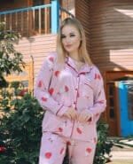 Strawberry satin pajamas